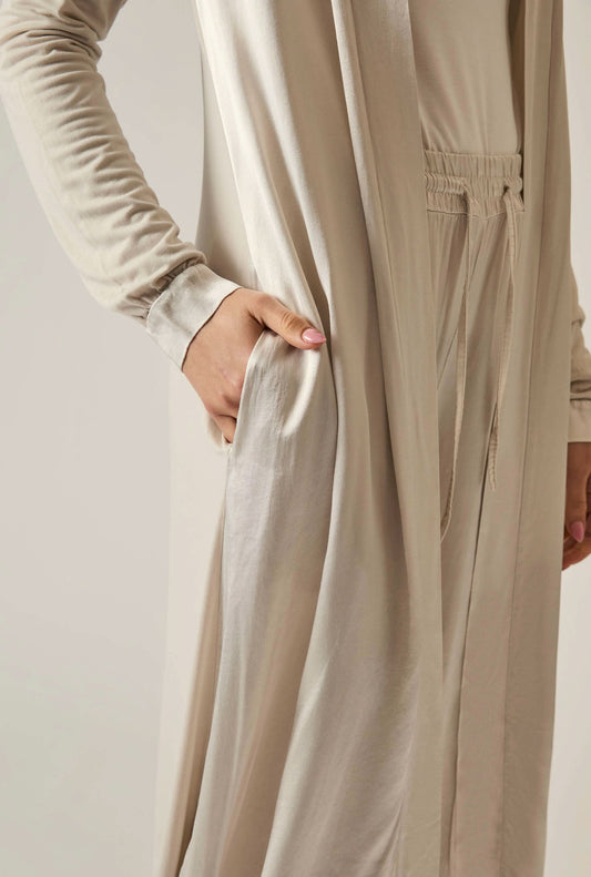Long Satin Beige Cardigan