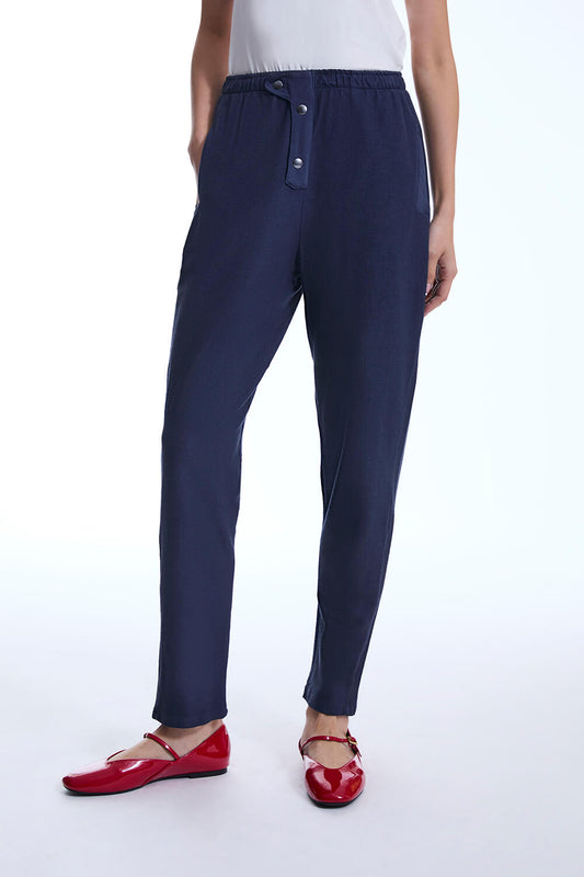 Navy Linen Button Trousers