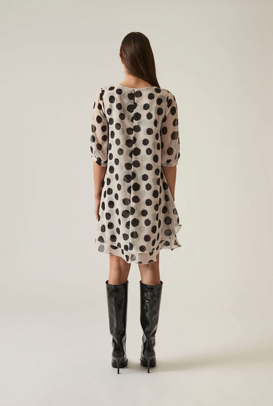 OfertaBlack-Cream Polka Dot Dress