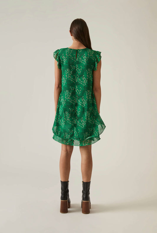 Dotted-Flower Mini Green Dress