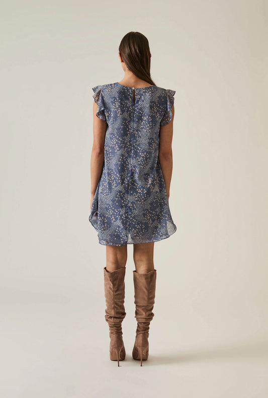 Dotted-Flower Mini Navy Dress