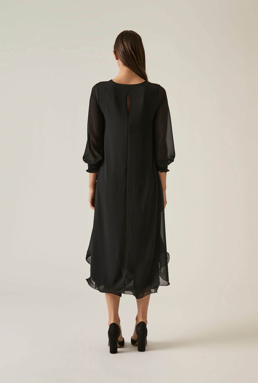Long Sleeve Black Wave Hem Dress