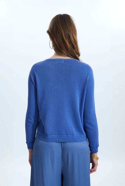 AanbiedingScoop Neck Piped Edge Knit Denim