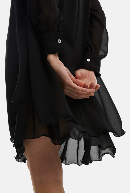AanbiedingLong Sleeve Black Wave Hem Dress