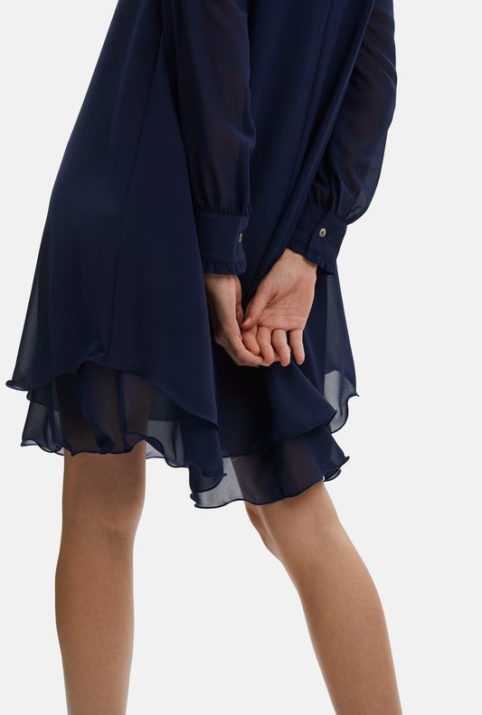 AanbiedingLong Sleeve Navy Wave Hem Dress