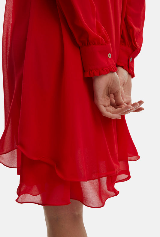 AanbiedingLong Sleeve Red Wave Hem Dress