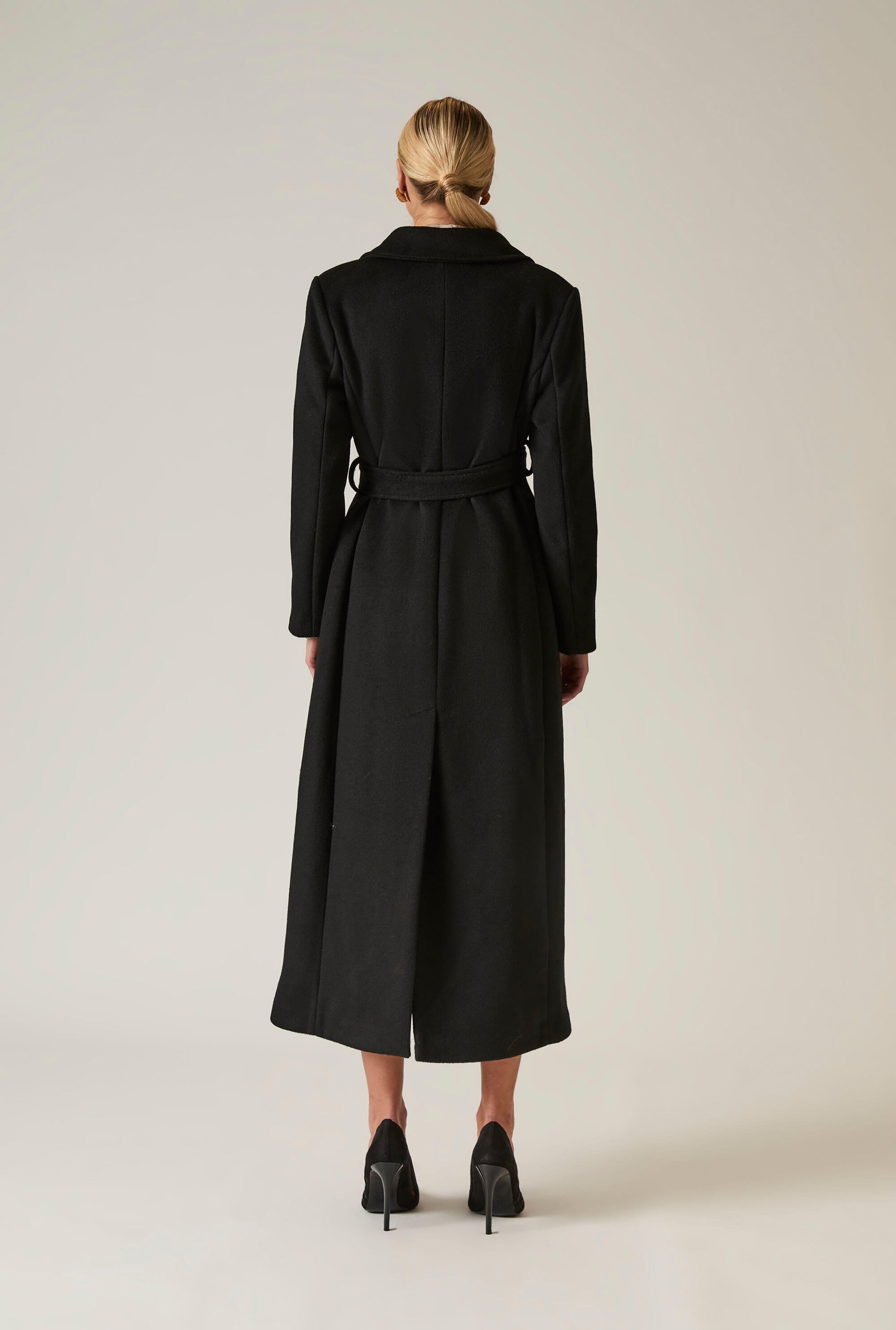 James Lakeland’s Long Black Classic Coat delivers dramatic elegance with a full-length silhouette, wide notched lapels, marble-look buttons, and a belted waist. Two side pockets and a bold leopard-print lining add contrast, making it a refined winter statement piece.
