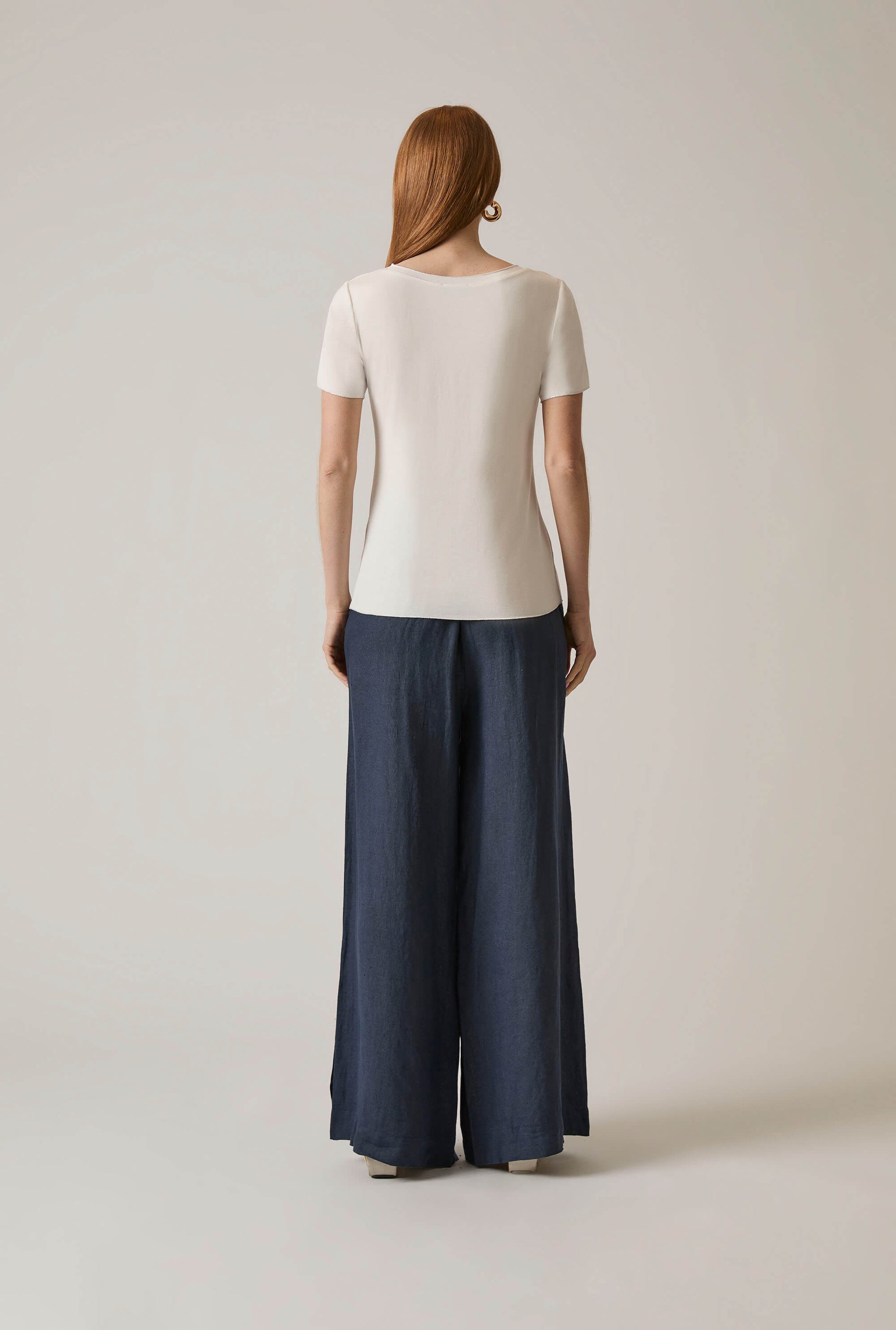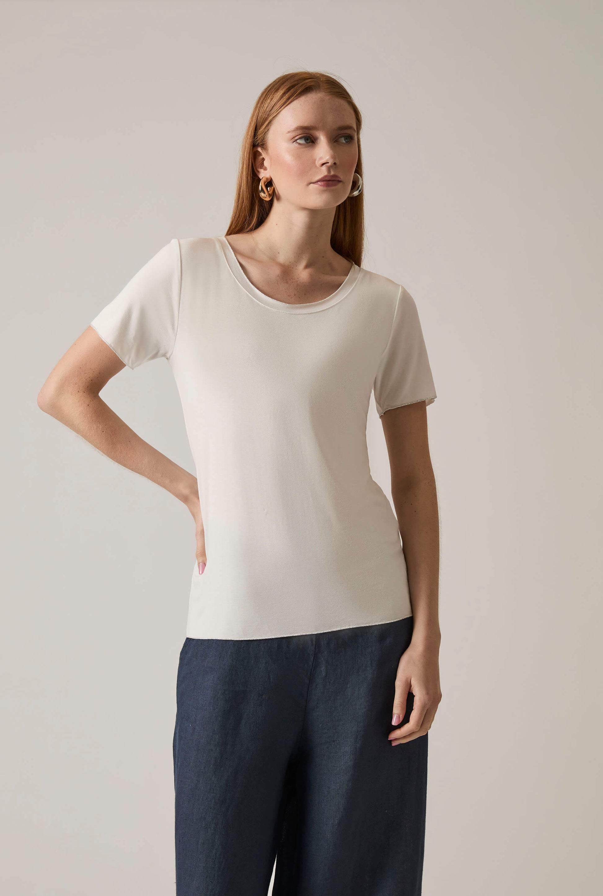This James Lakeland Short Sleeve White Top combines simplicity with an elegant touch. Featuring a delicate lurex trim along the neckline and sleeves, it adds subtle shimmer to a timeless silhouette. Designed with a relaxed fit and breathable fabric, it offers all-day comfort while maintaining a refined look. Available in various colors for versatile styling.