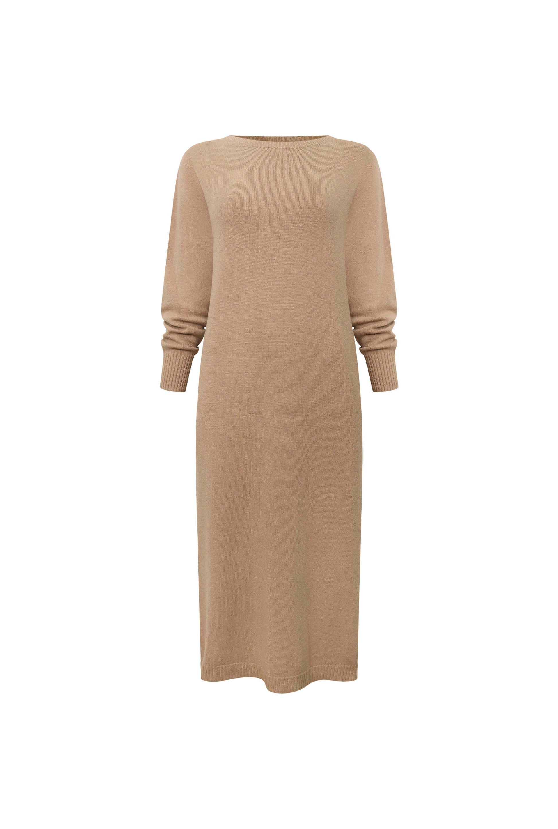 A timeless wardrobe staple, the James Lakeland Taupe Knitted Midi Dress is crafted from a soft, mid-weight knit that offers warmth and comfort. Cut in a straight silhouette, it features a classic round neckline, long sleeves, and subtle ribbed detailing at the cuffs and hem. Falling to mid-calf, this dress delivers effortless elegance with a relaxed yet polished feel.