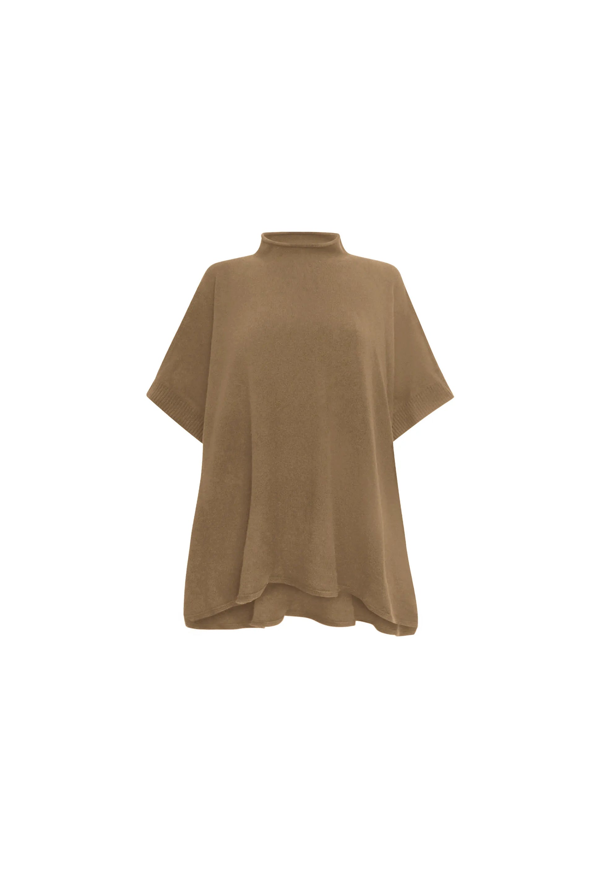 A refined one-size poncho in taupe, crafted in Italy from a soft viscose blend. The funnel neckline and short sleeves create an elegant silhouette, whilst colour-matched side buttons add subtle detail.